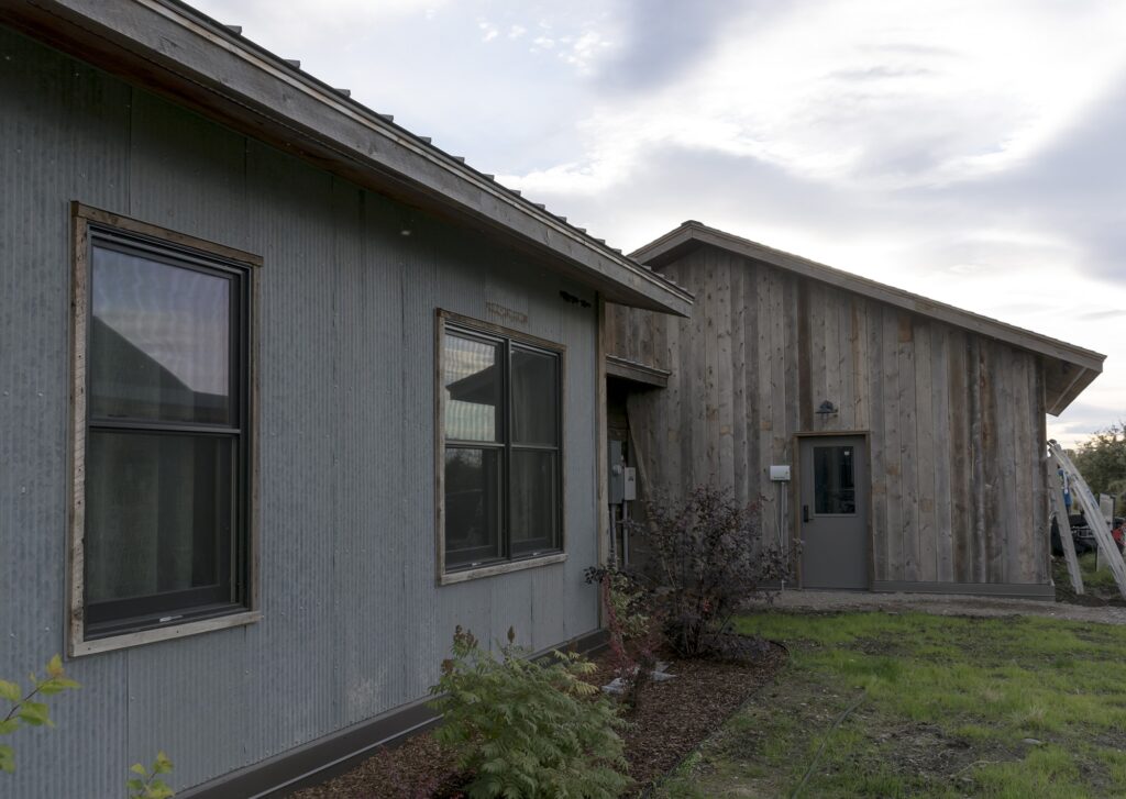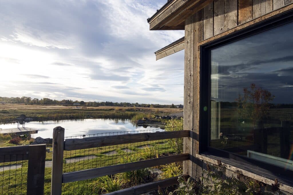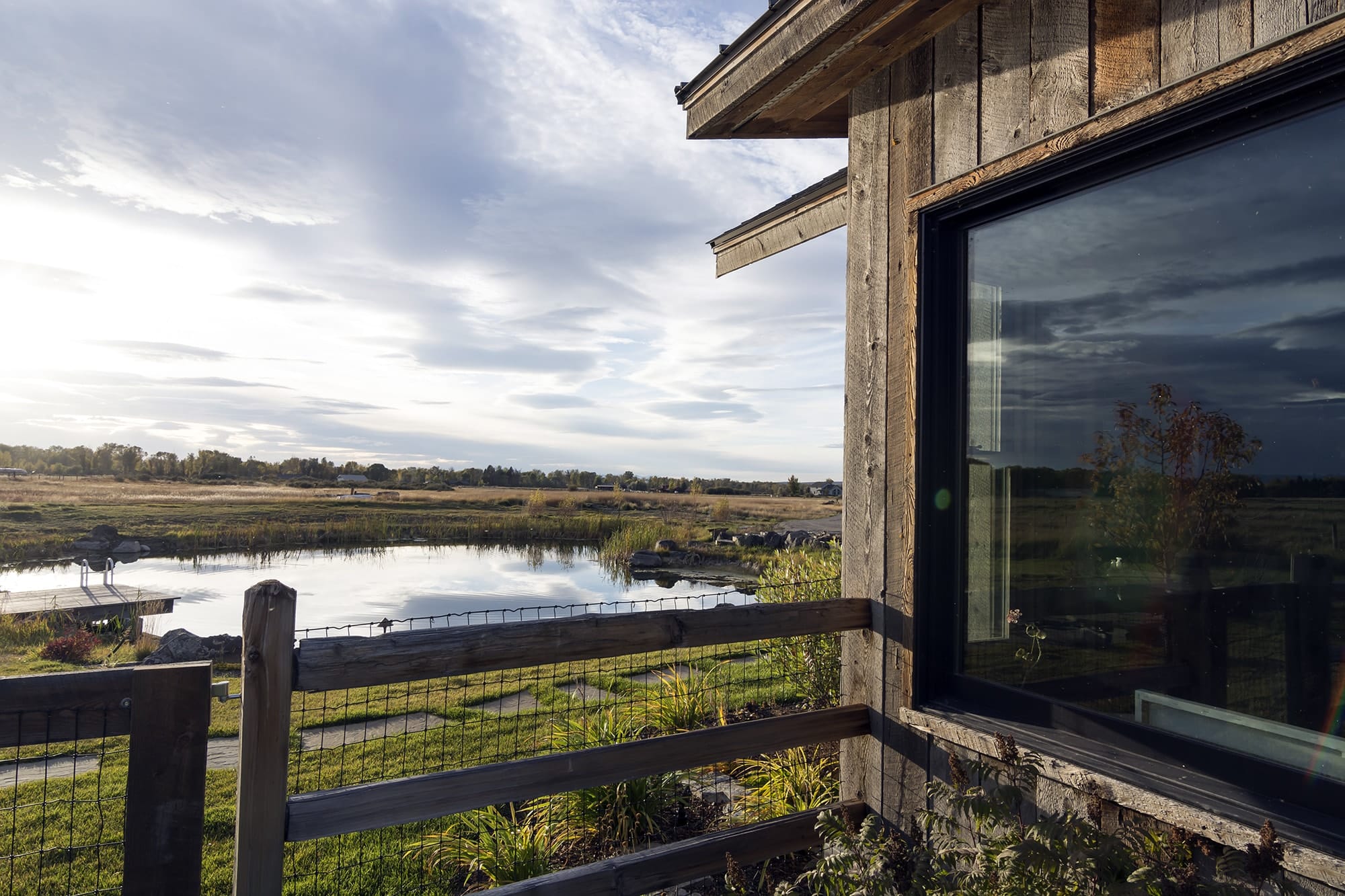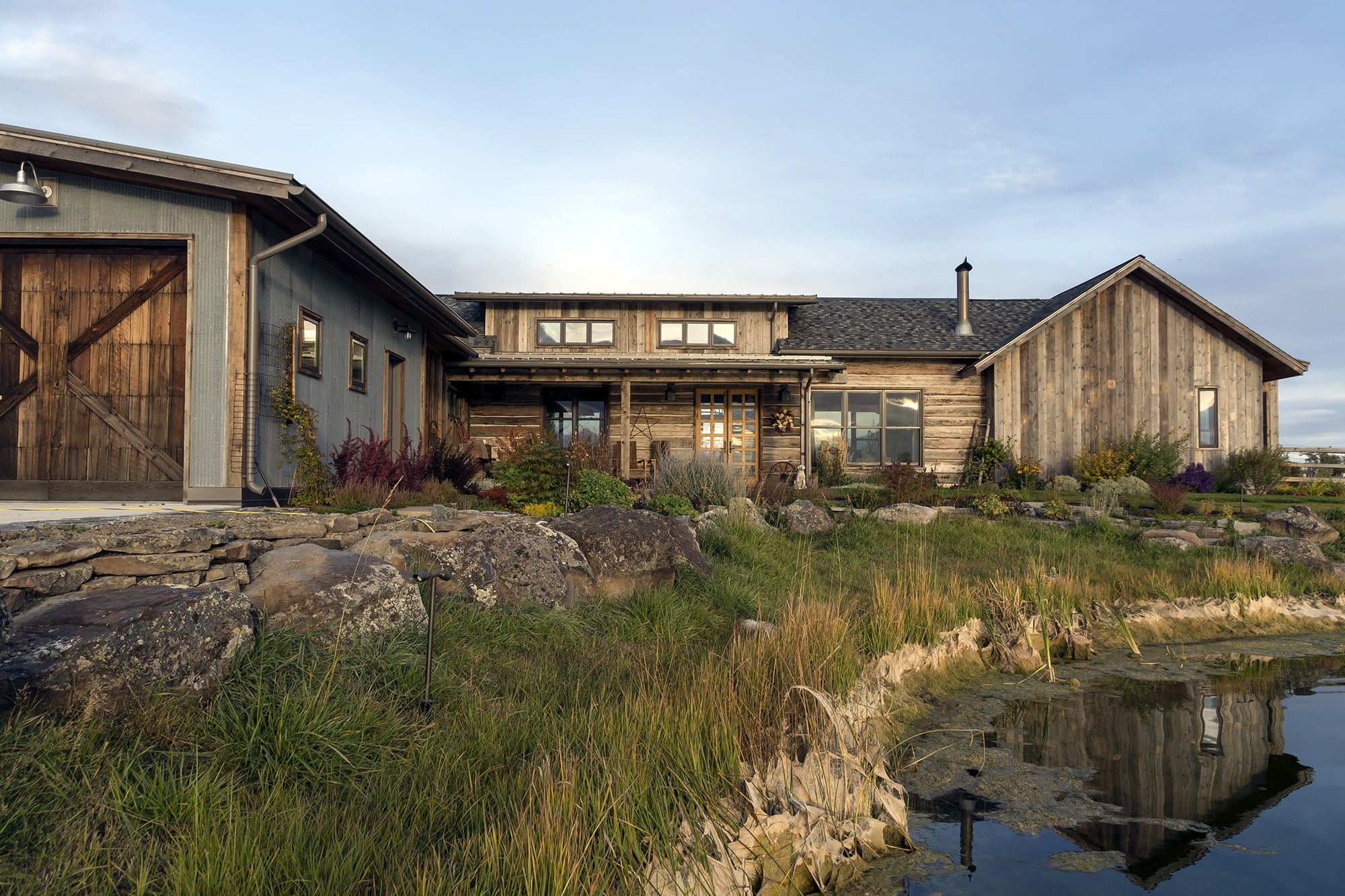 The Dry Creek home features a stunning mix of reclaimed wood siding and timbers that blend seamlessly into the surrounding landscape. The natural texture and weathered tones of the wood add rustic elegance to the exterior, while expansive windows and thoughtful craftsmanship create a warm, welcoming aesthetic. Old World Lumber’s materials give the home a timeless character rooted in Montana’s rugged charm.